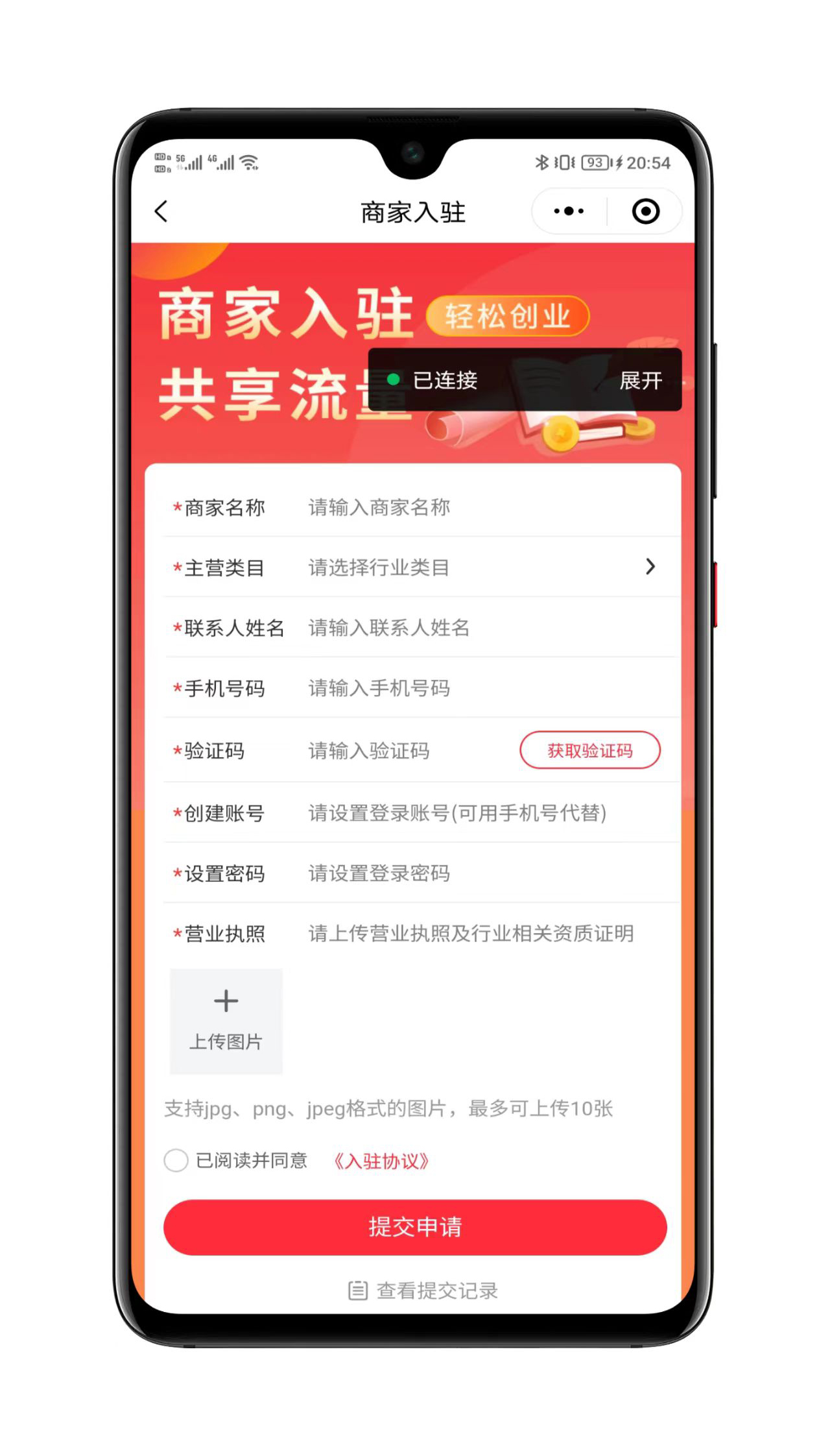 商家入驻:手机端商家入驻,快捷申请,一键开店, 审核通过自动开通独立商家管理后台。