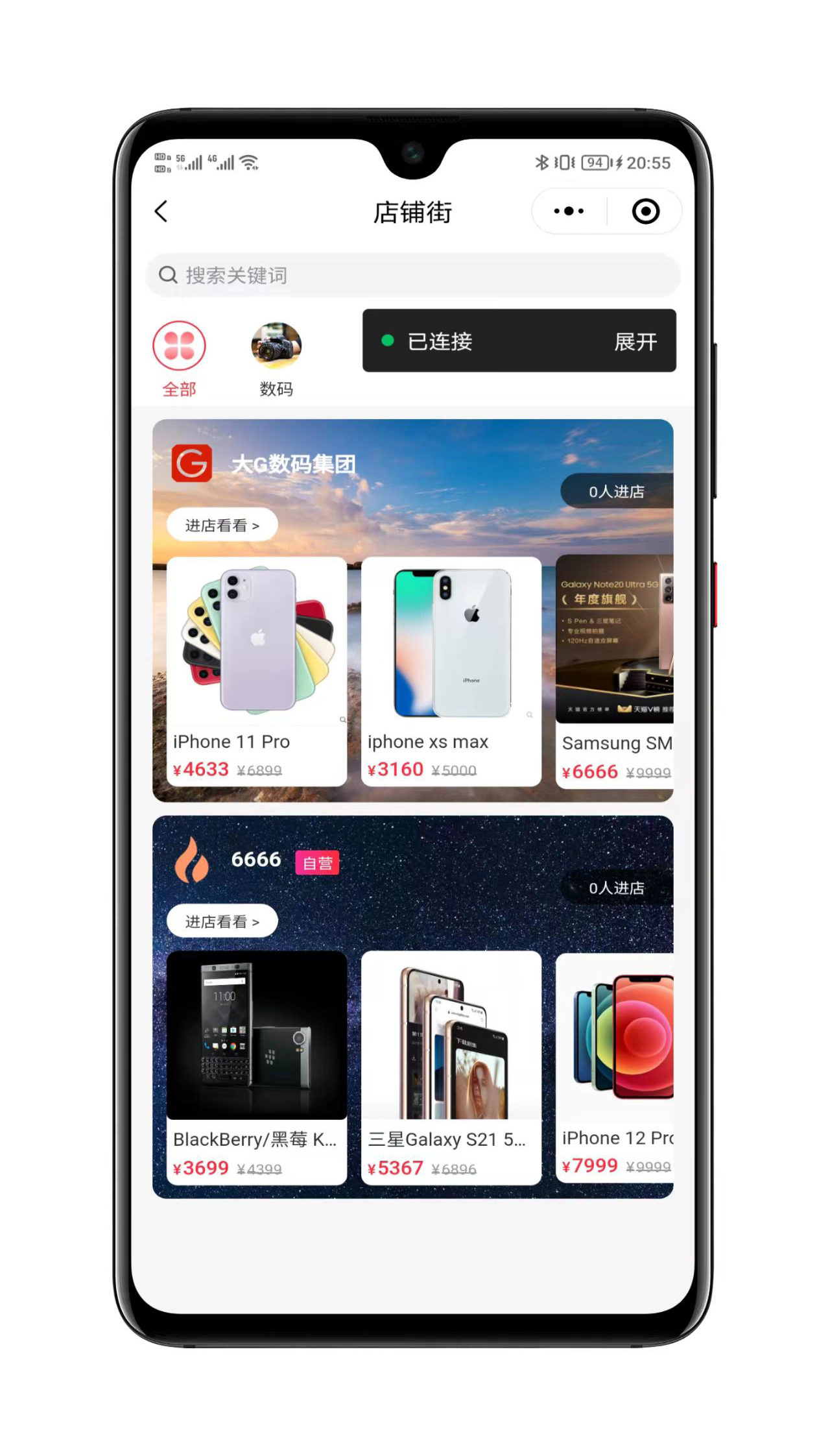 店铺街:店铺可上传背景大图,打造震撼的店铺街场景,用户线上逛街身临其境,提高店铺客流量。