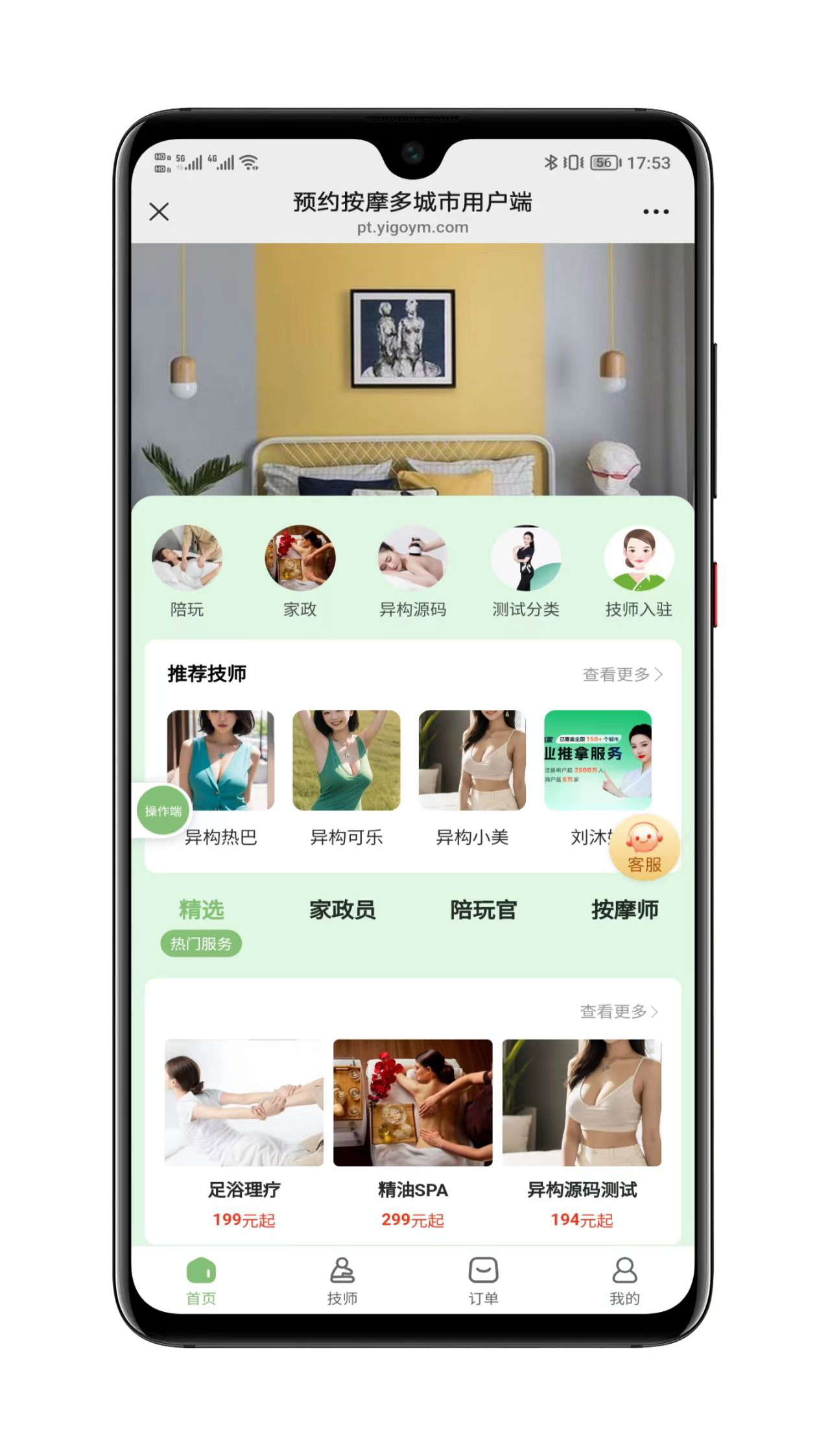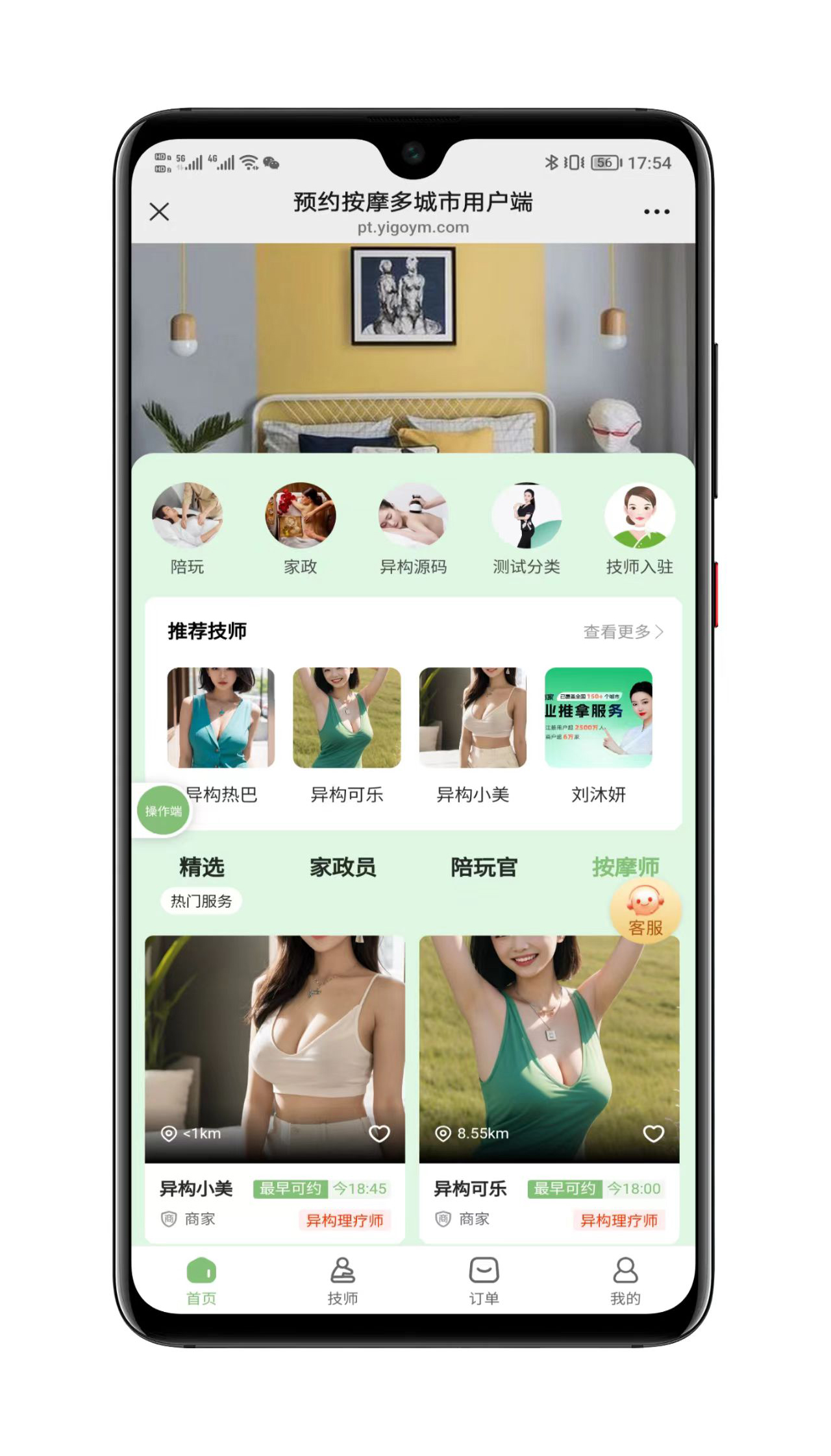 2、新增多行业功能,设置技师行业岗位,首页行业分类DIY;